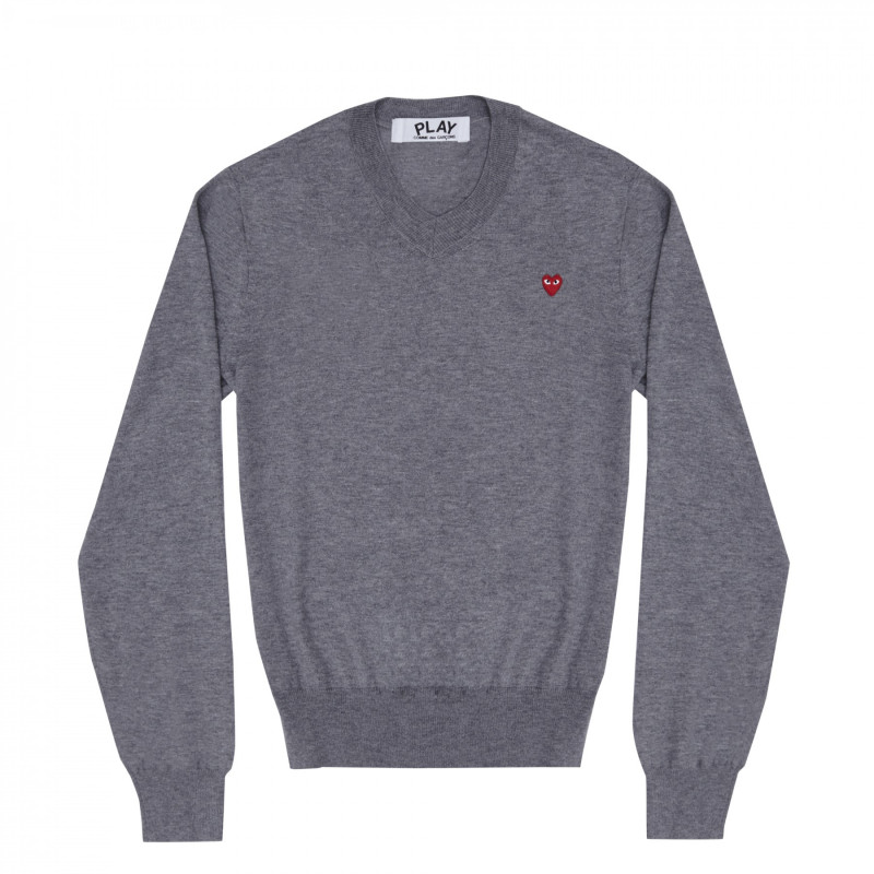 CDG Play 迷你愛心V領毛衣 (灰色)