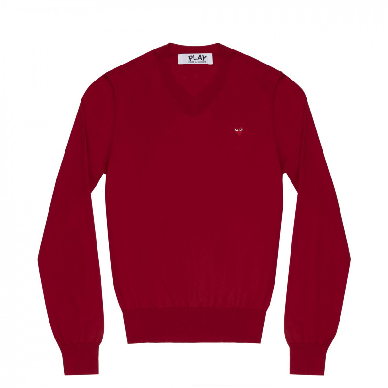 CDG Play 迷你愛心V領毛衣 (紅色)