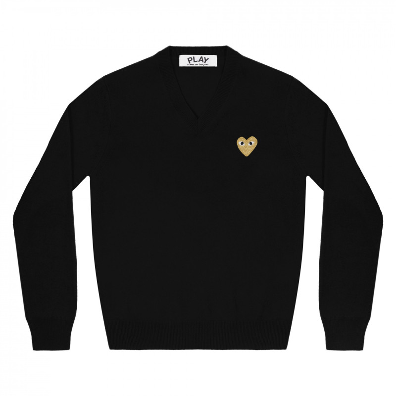 CDG Play 金色愛心V領毛衣 (黑色)