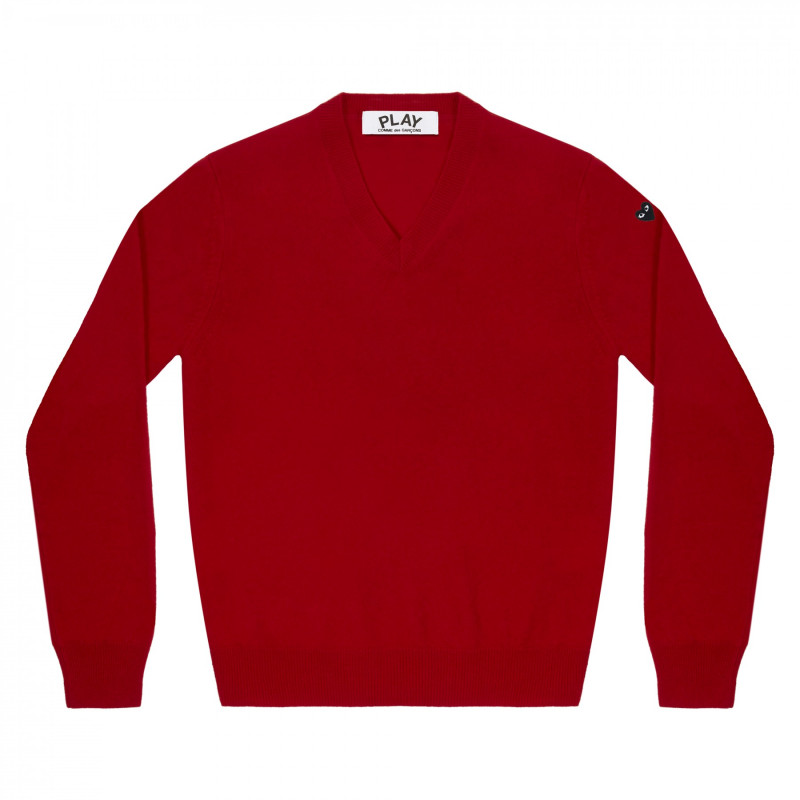 CDG Play 左臂黑色小愛心V領毛衣 (紅色)