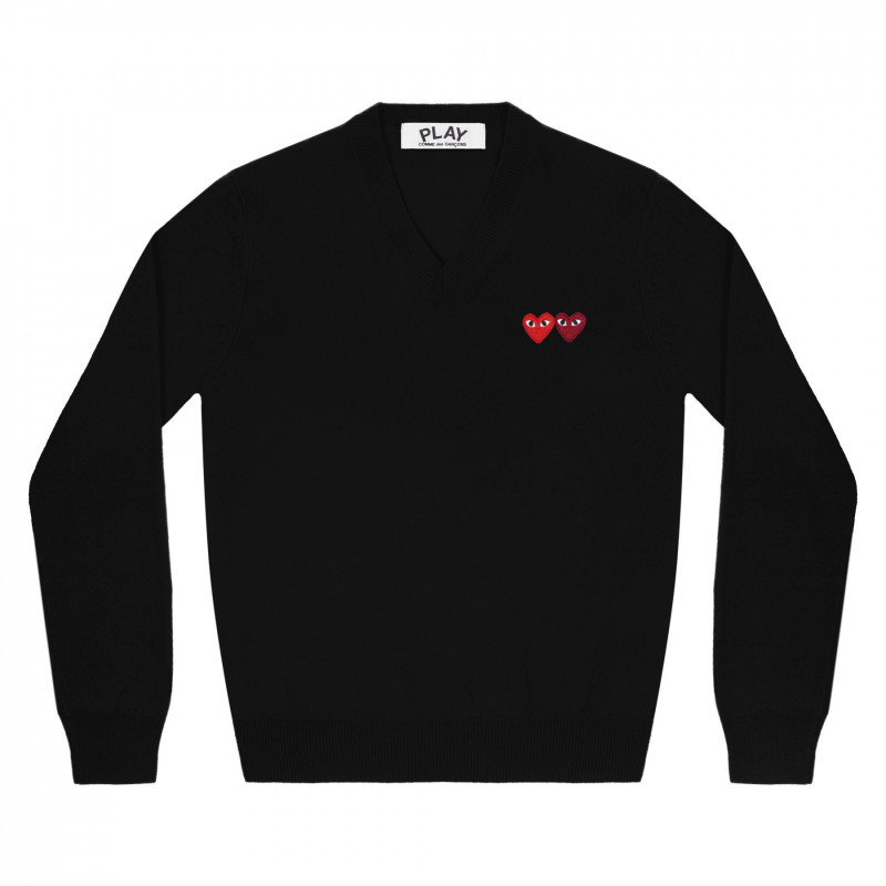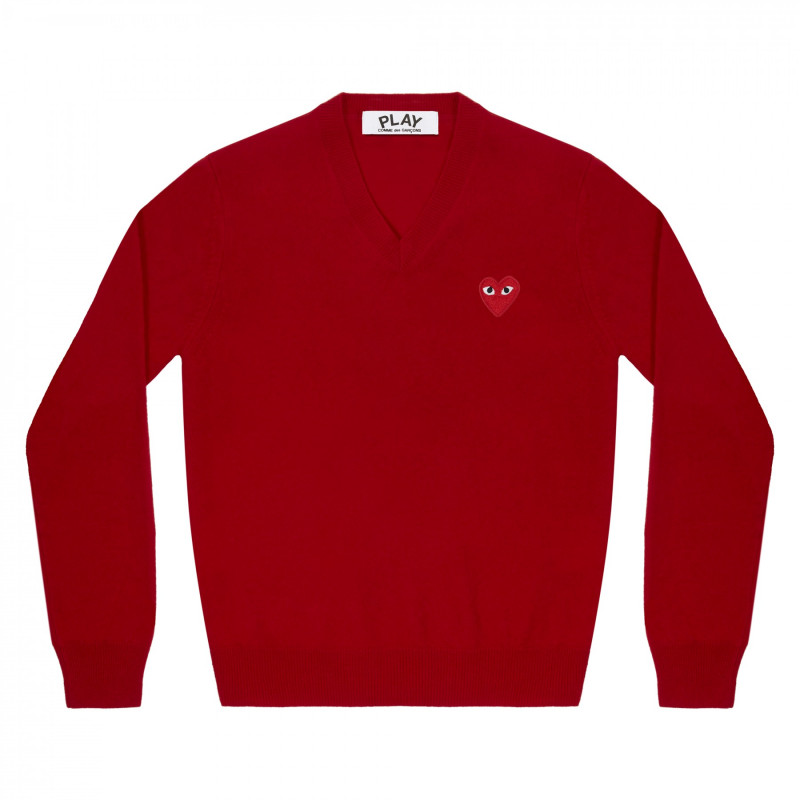 CDG Play 紅色愛心V領毛衣 (紅色)