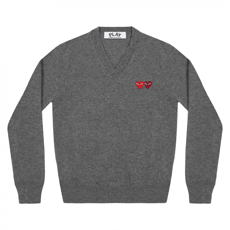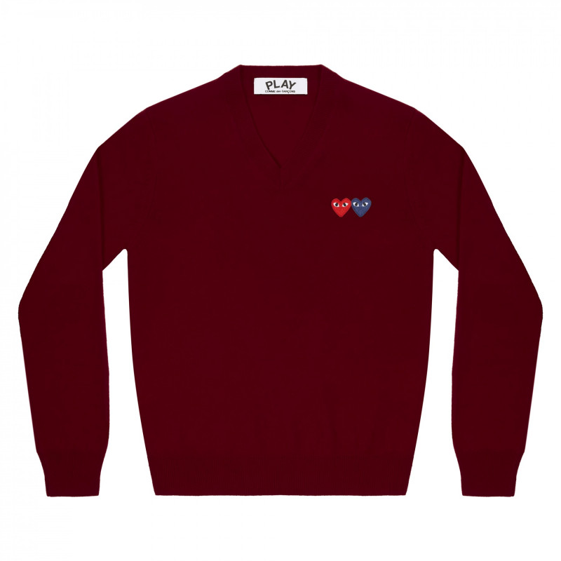 CDG Play 雙愛心V領毛衣 (酒紅色)