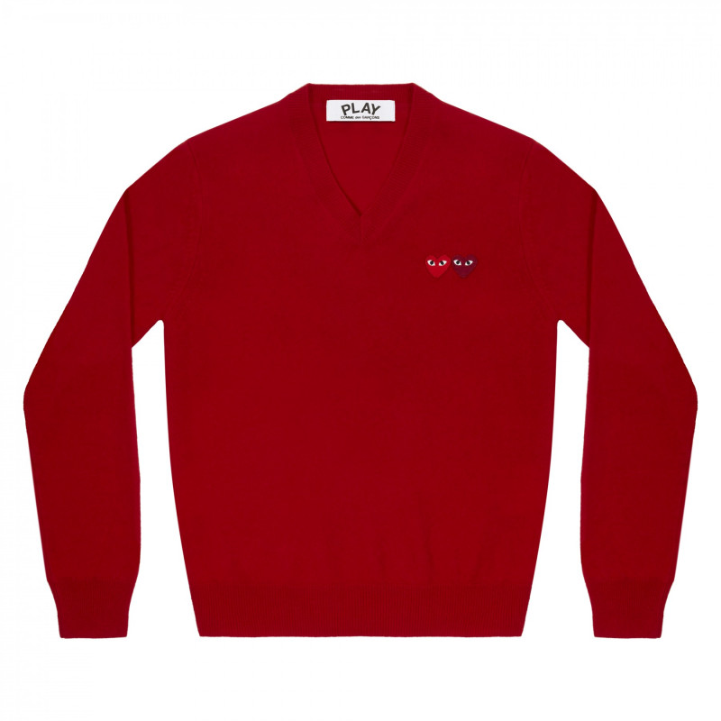 CDG Play 雙愛心V領毛衣 (海軍藍色)